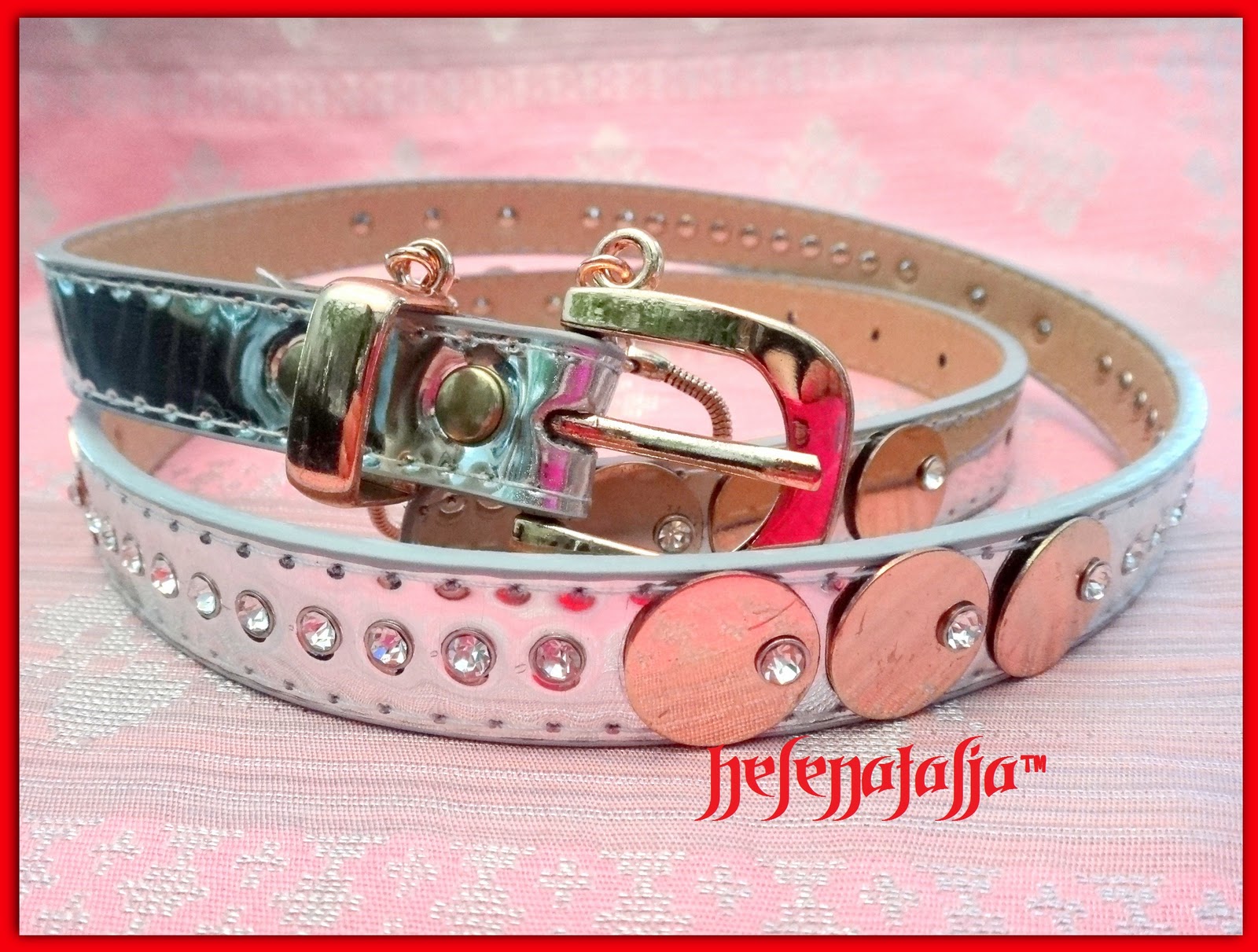 Description: Stylish skinny belt to enhance you appearance. Made of shiny PVC surface with diamonds & coin-like tiny plates.